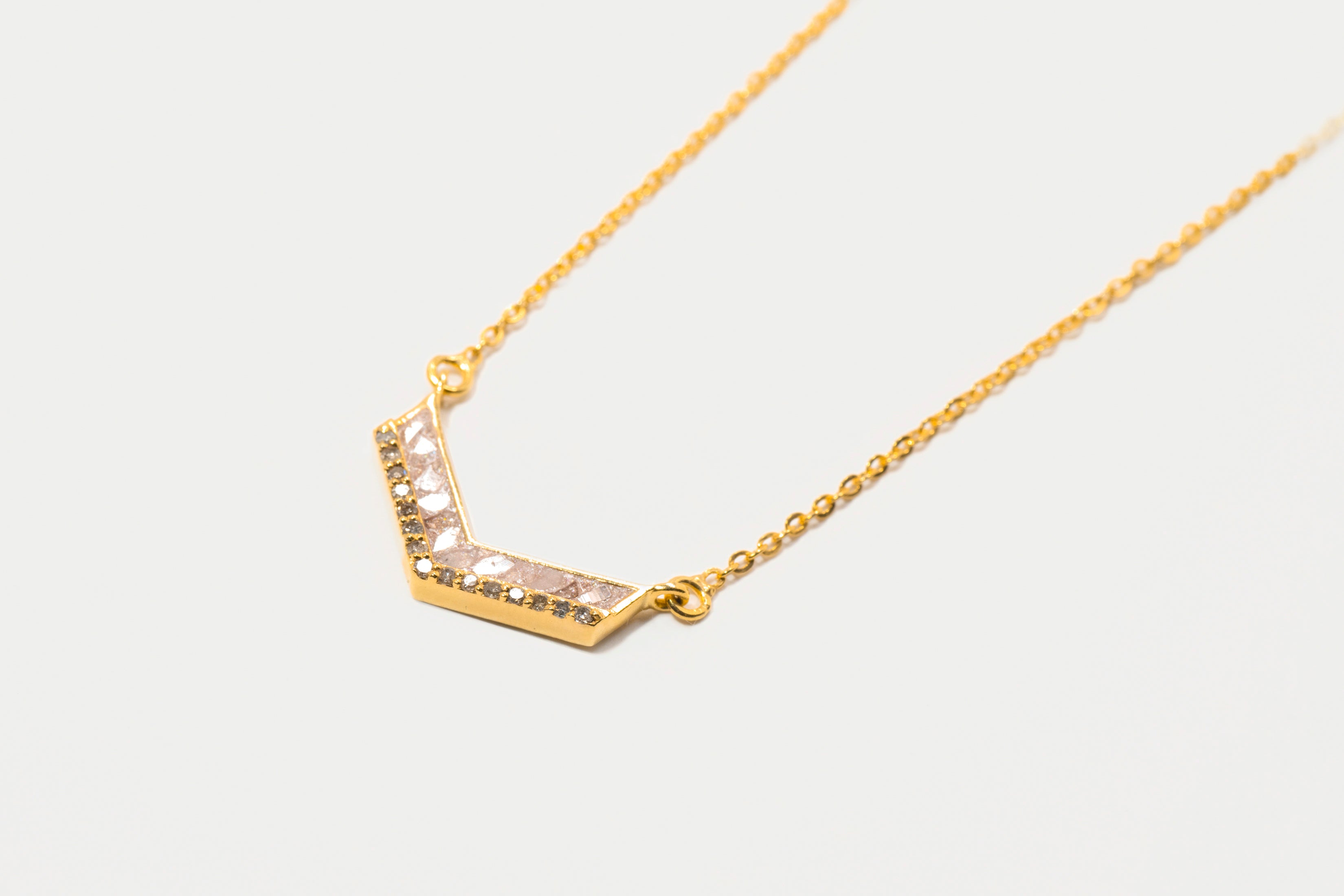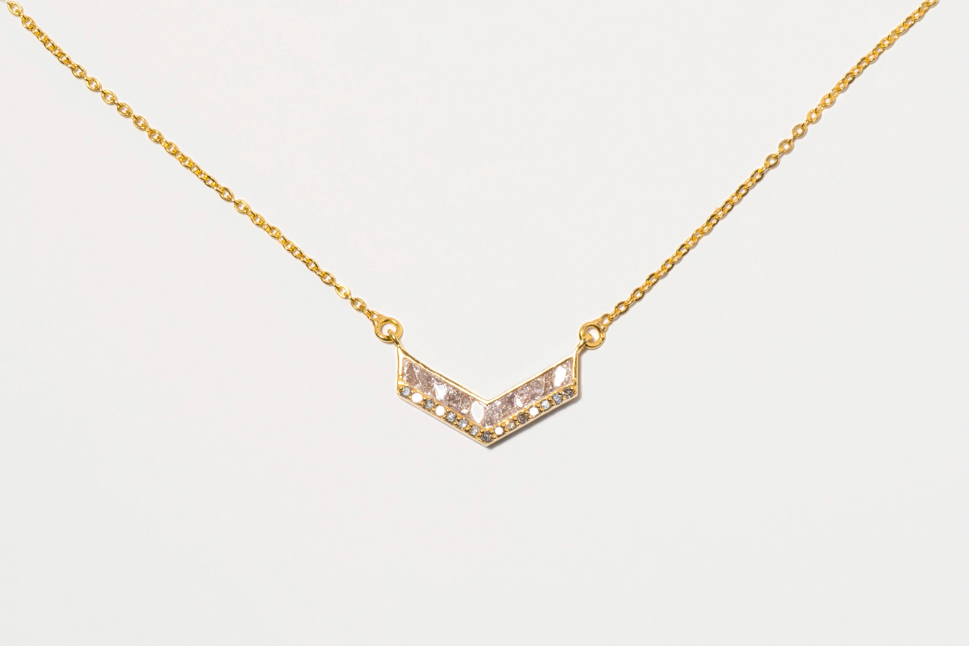 Sliced raw uncut diamonds, Rose resin, Pave champagne diamonds, Vermeil 18K gold