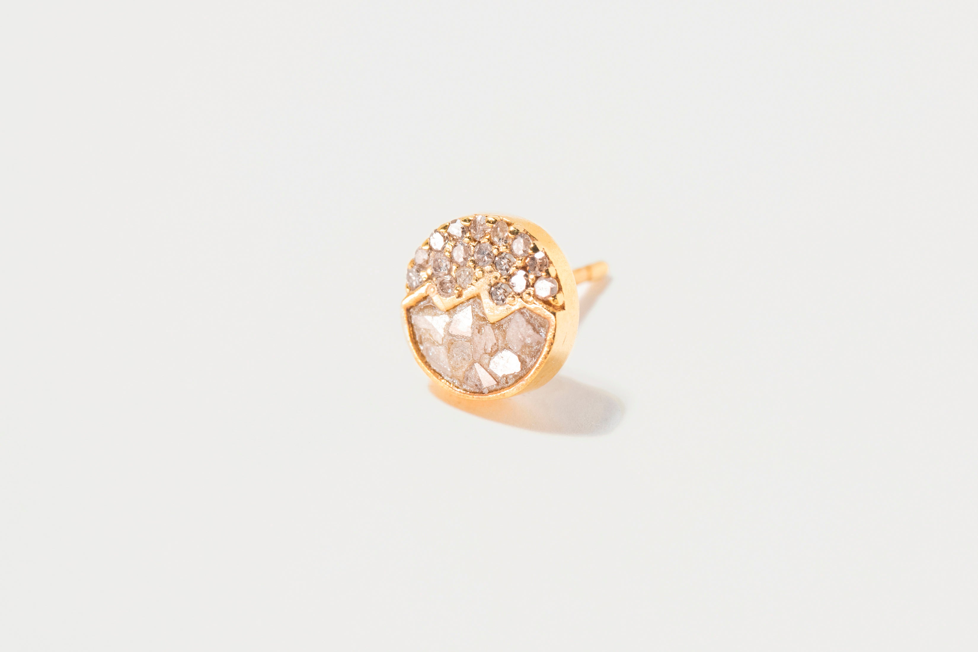 Sliced raw uncut diamonds, Sand resin, Pave champagne diamonds, Vermeil 18k gold