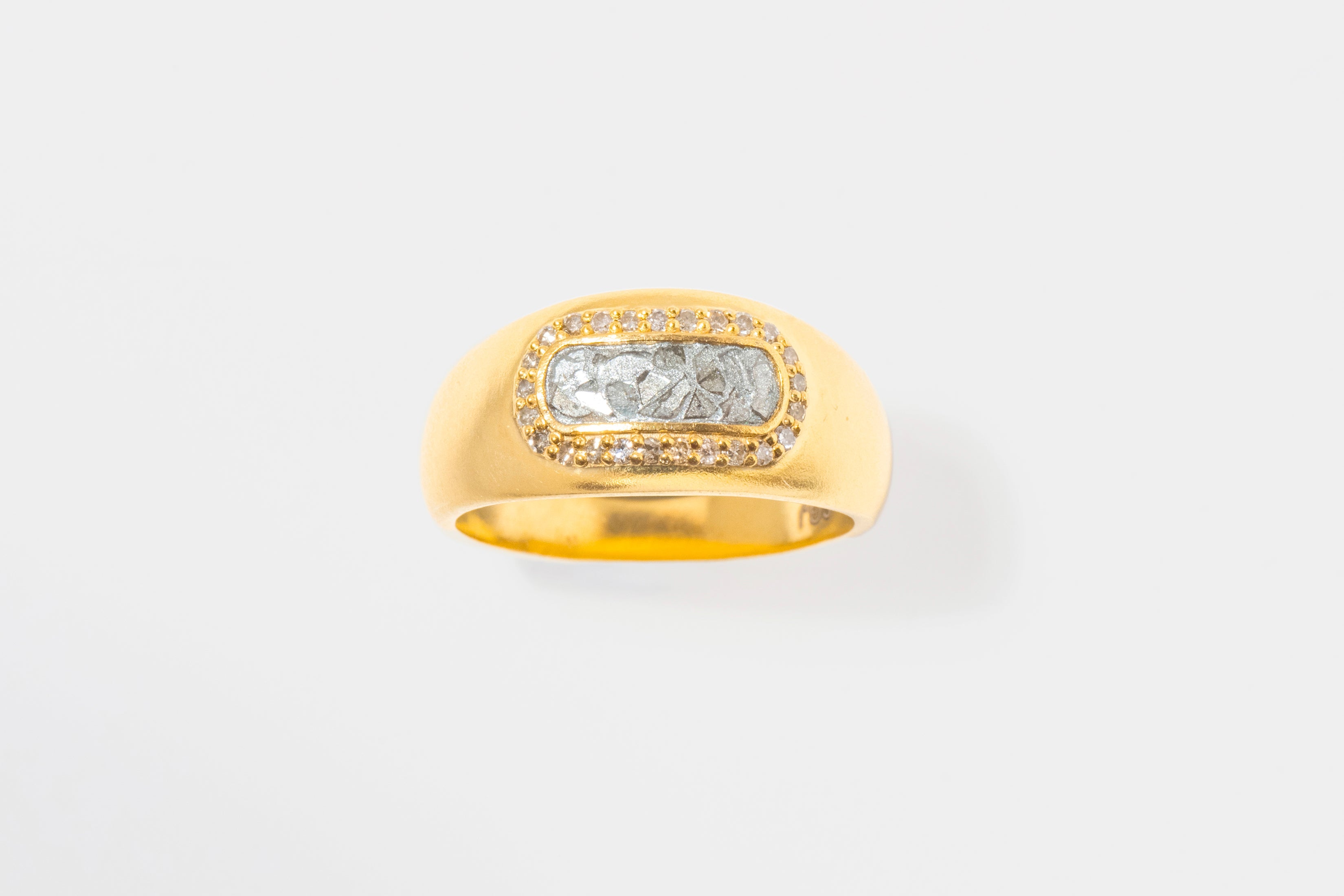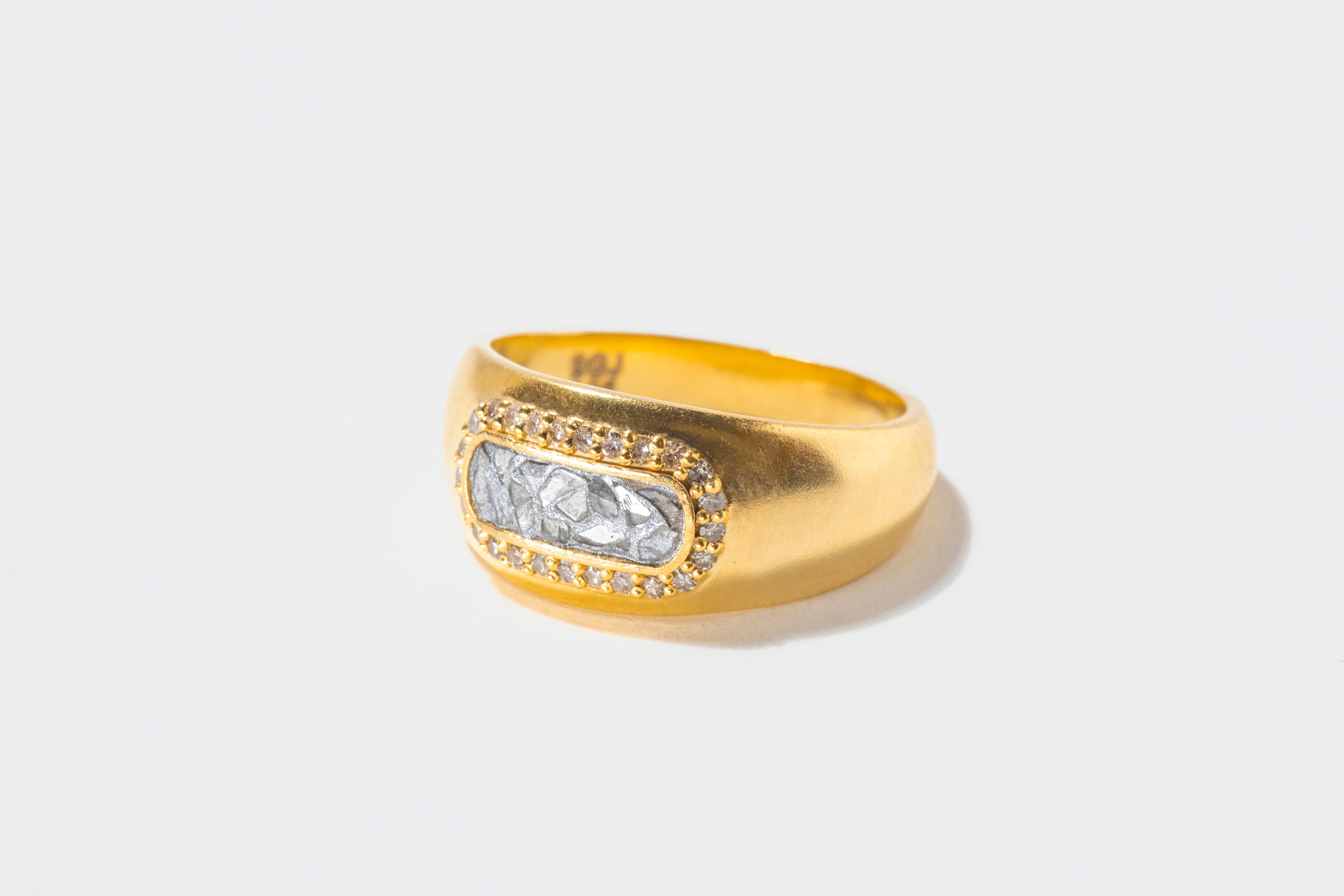 Sliced raw uncut diamonds, Silver resin, Pave champagne diamonds, Vermeil 18K gold