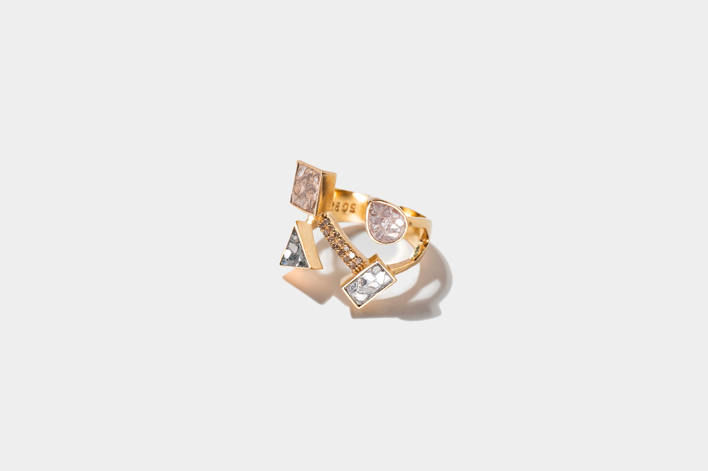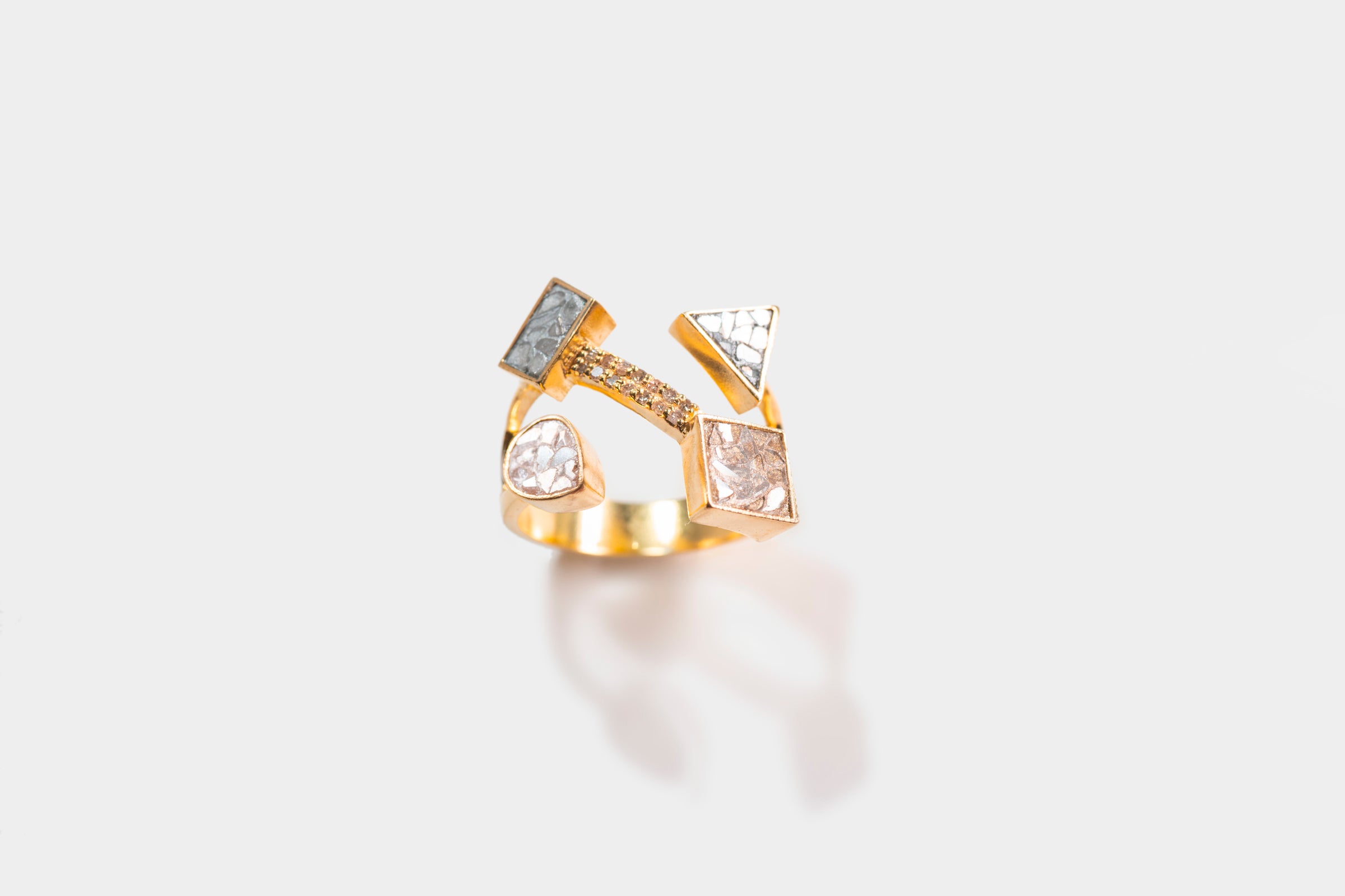 Sliced raw uncut diamonds, Silver resin, Gold resin, Champagne resin, Black resin, Pave champagne diamonds, 18k Gold Vermeil.