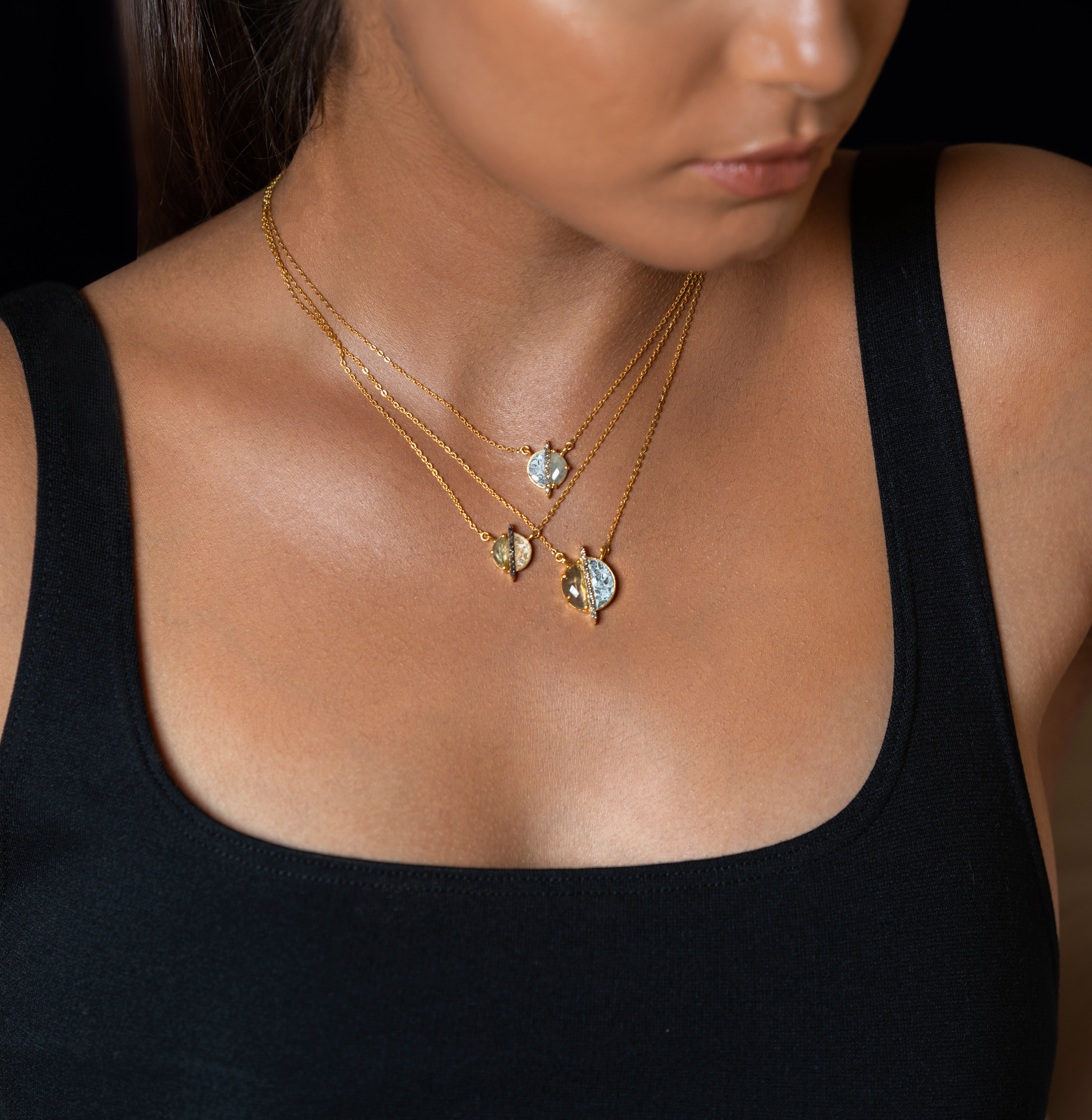Sliced raw uncut diamonds, Yellow rutile, Sand resin, Pave champagne diamonds, Vermeil 18K gold