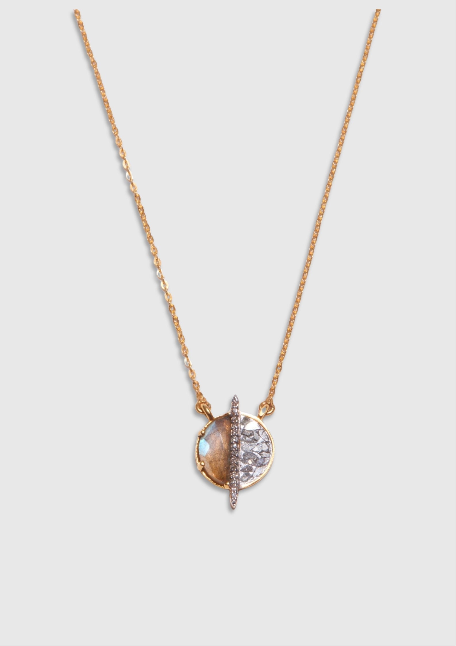 Sliced raw uncut diamonds, Labradorite, Silver resin, Pave champagne diamonds, Vermeil 18K gold