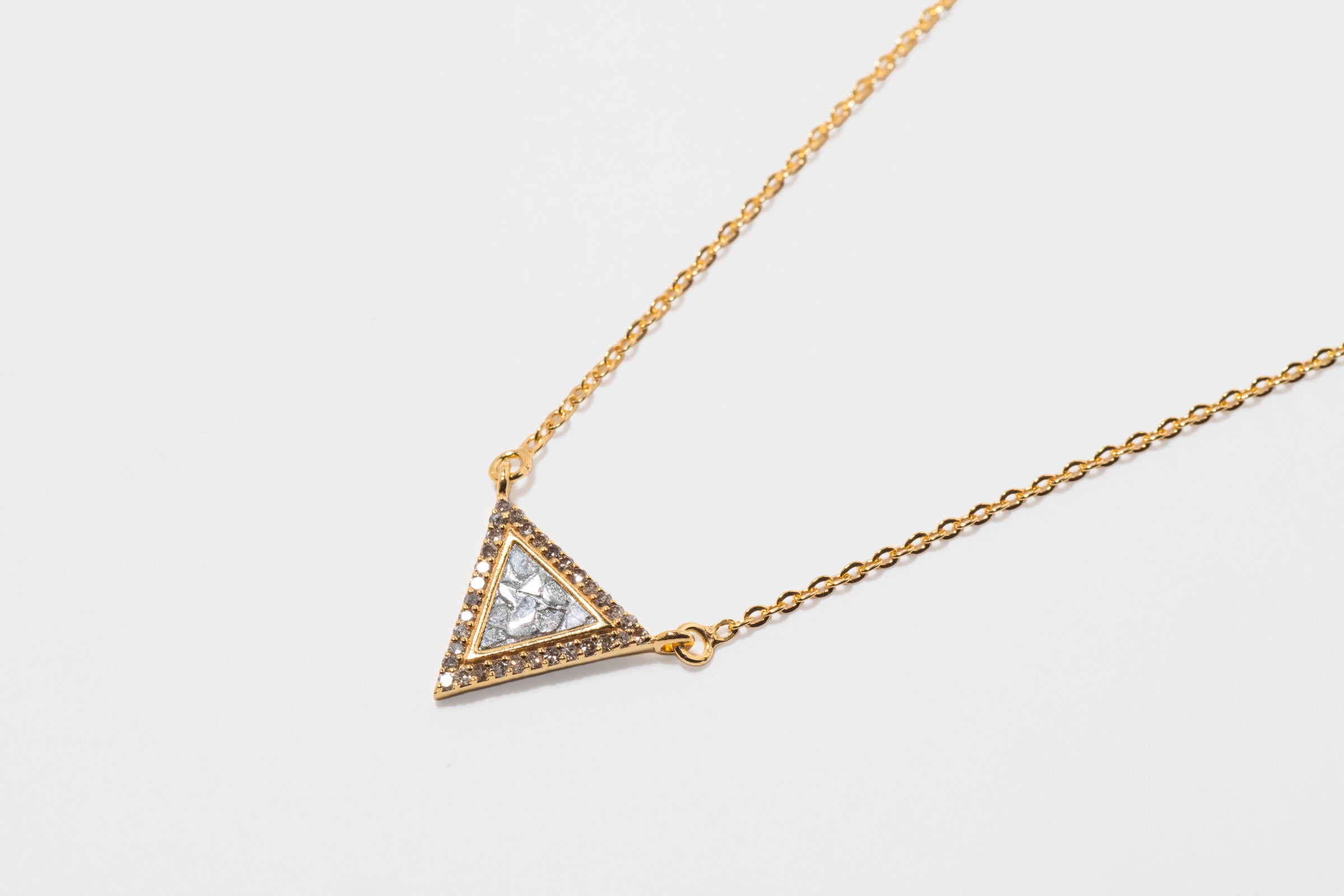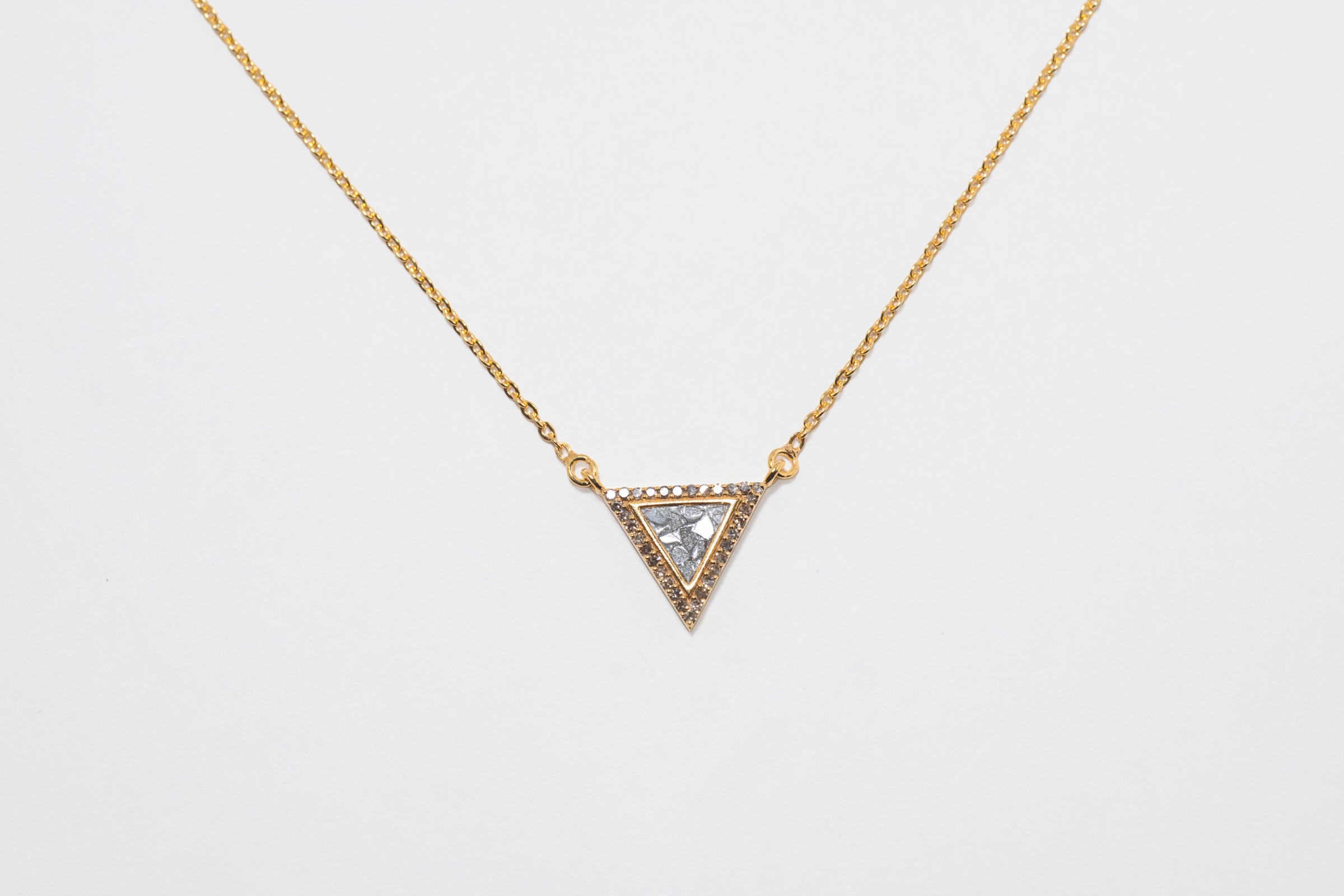 Sliced raw uncut diamonds, Silver resin, Pave champagne diamonds, Vermeil 18K gold