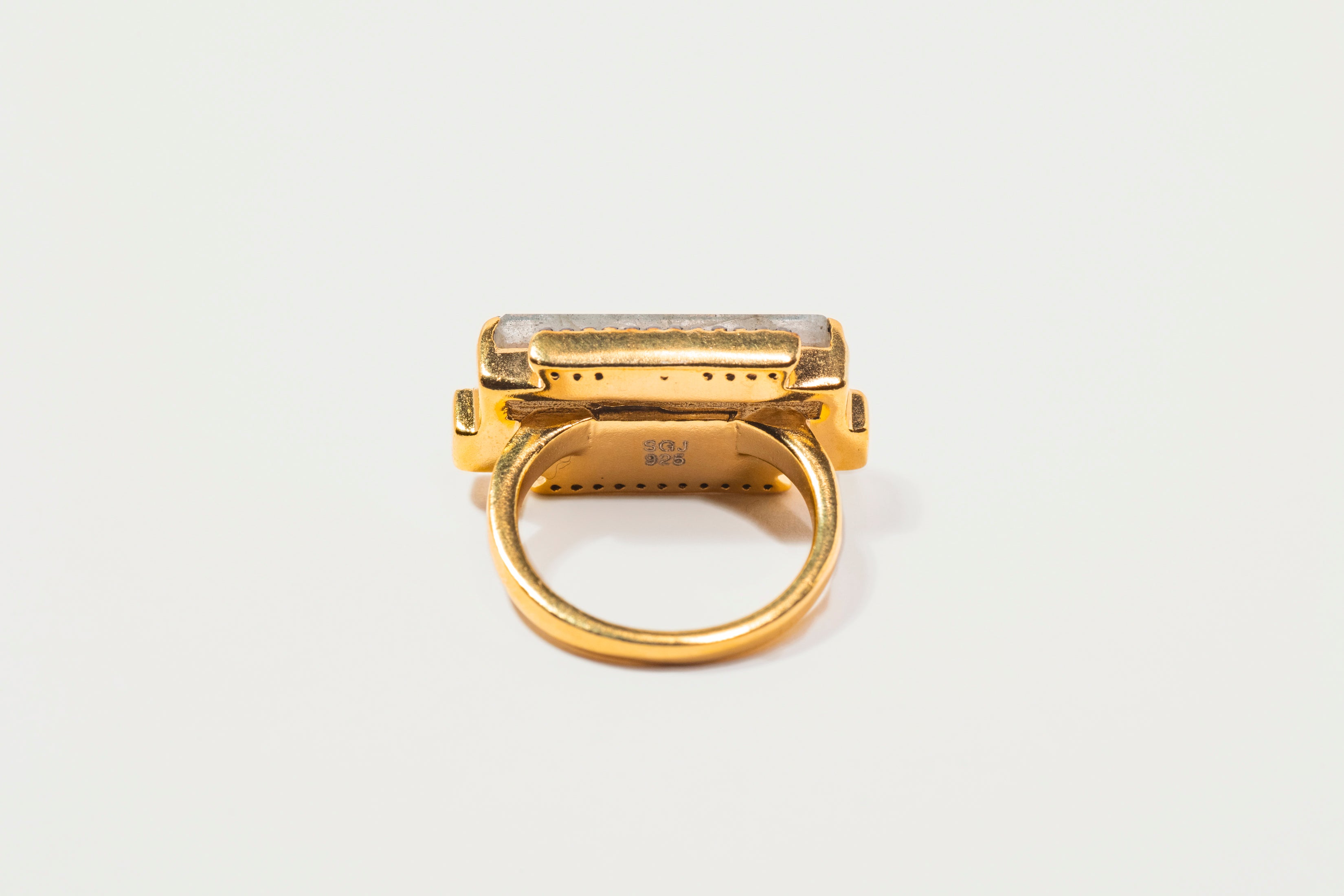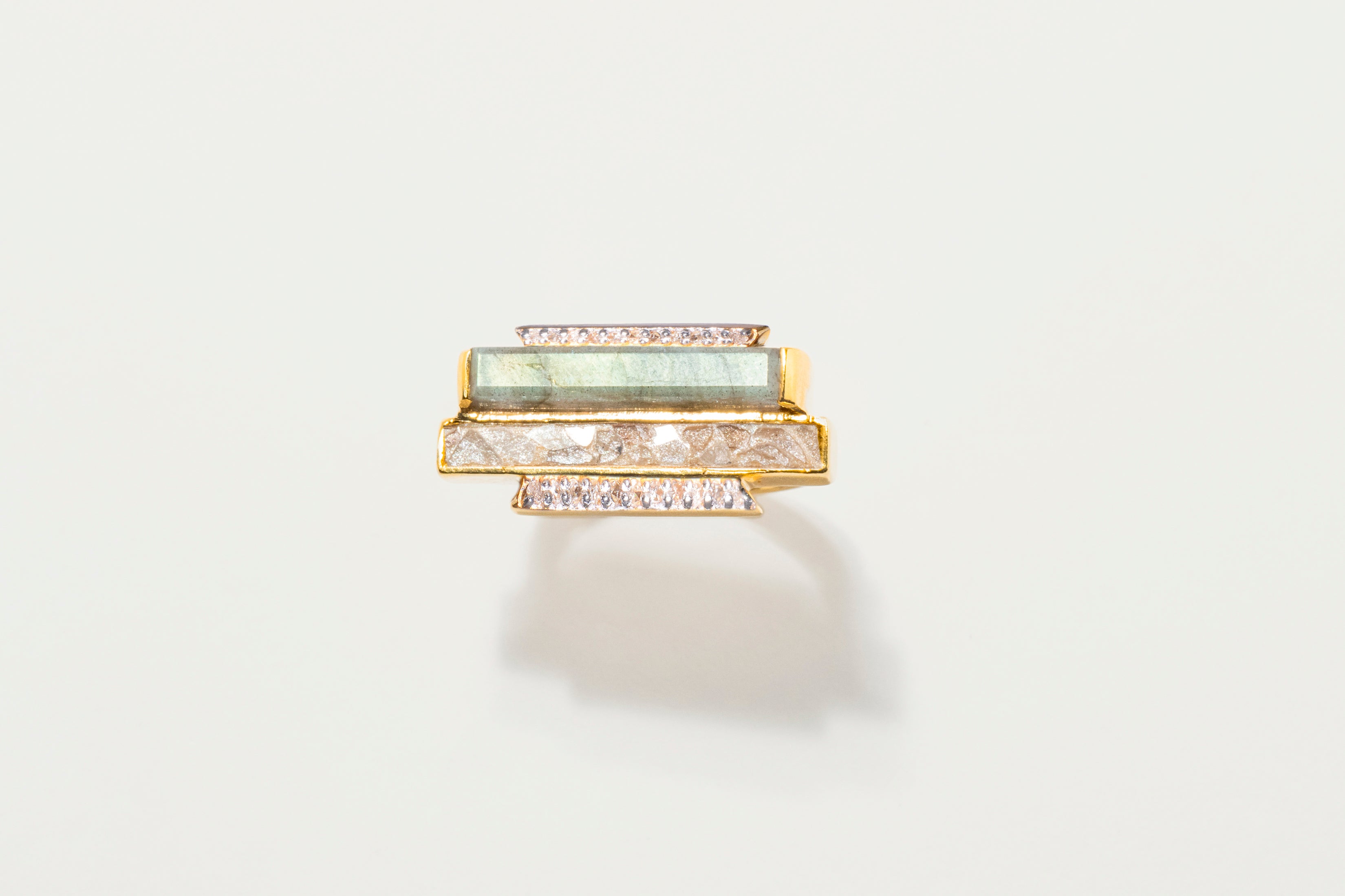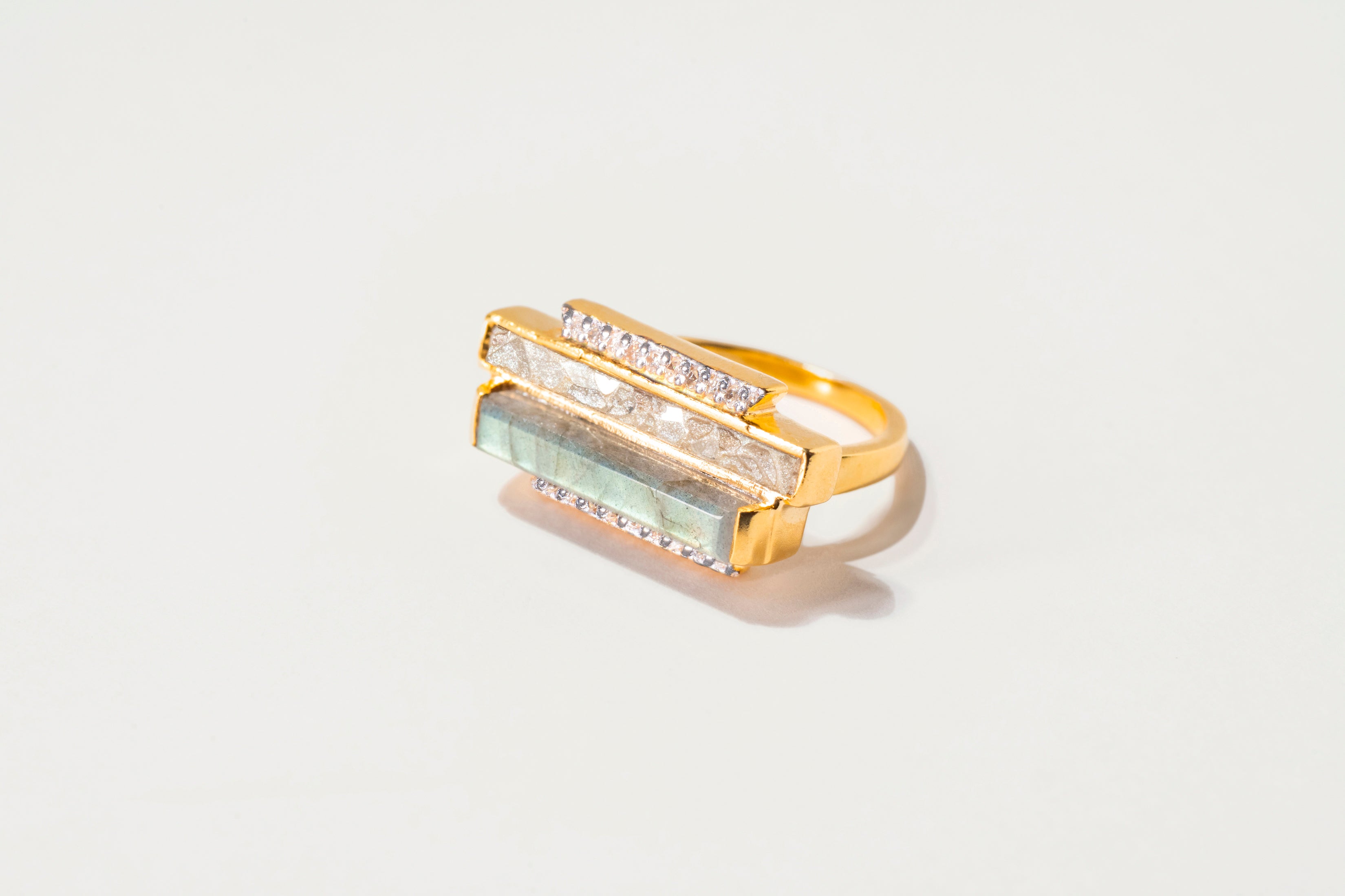 Sliced raw uncut diamonds, Sand resin, Labradorite, Pave champagne diamonds, Vermeil 18K gold