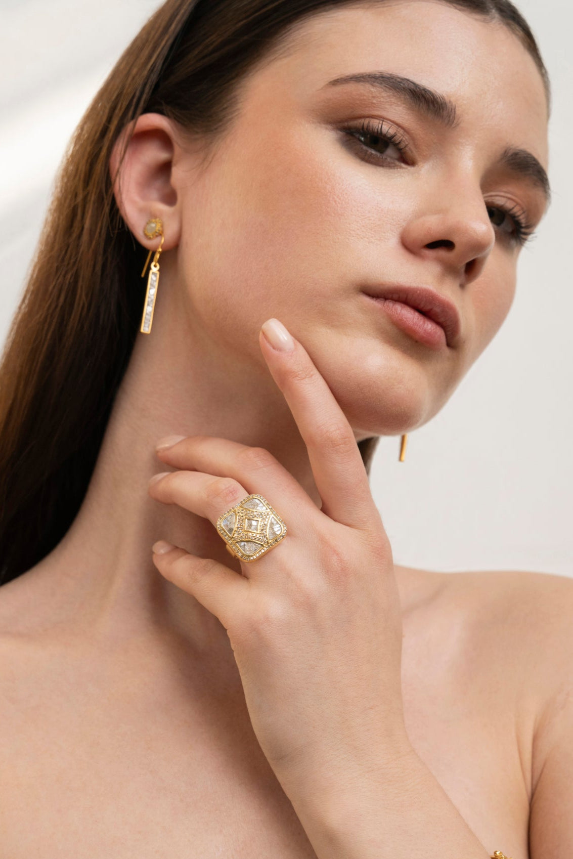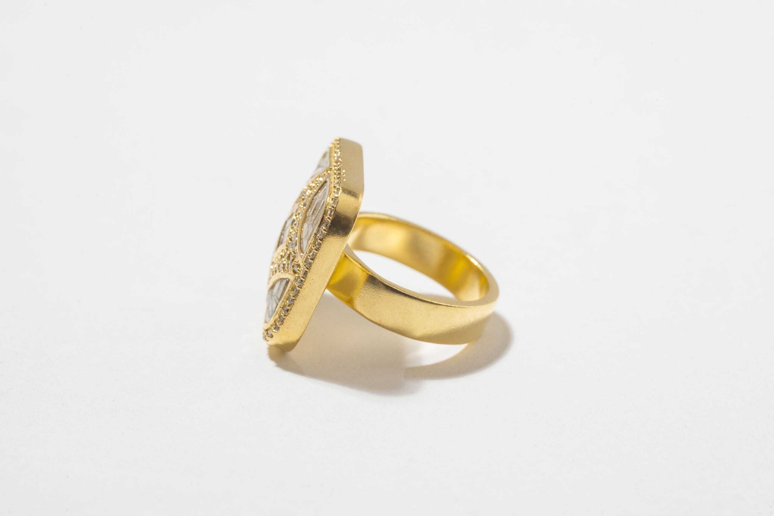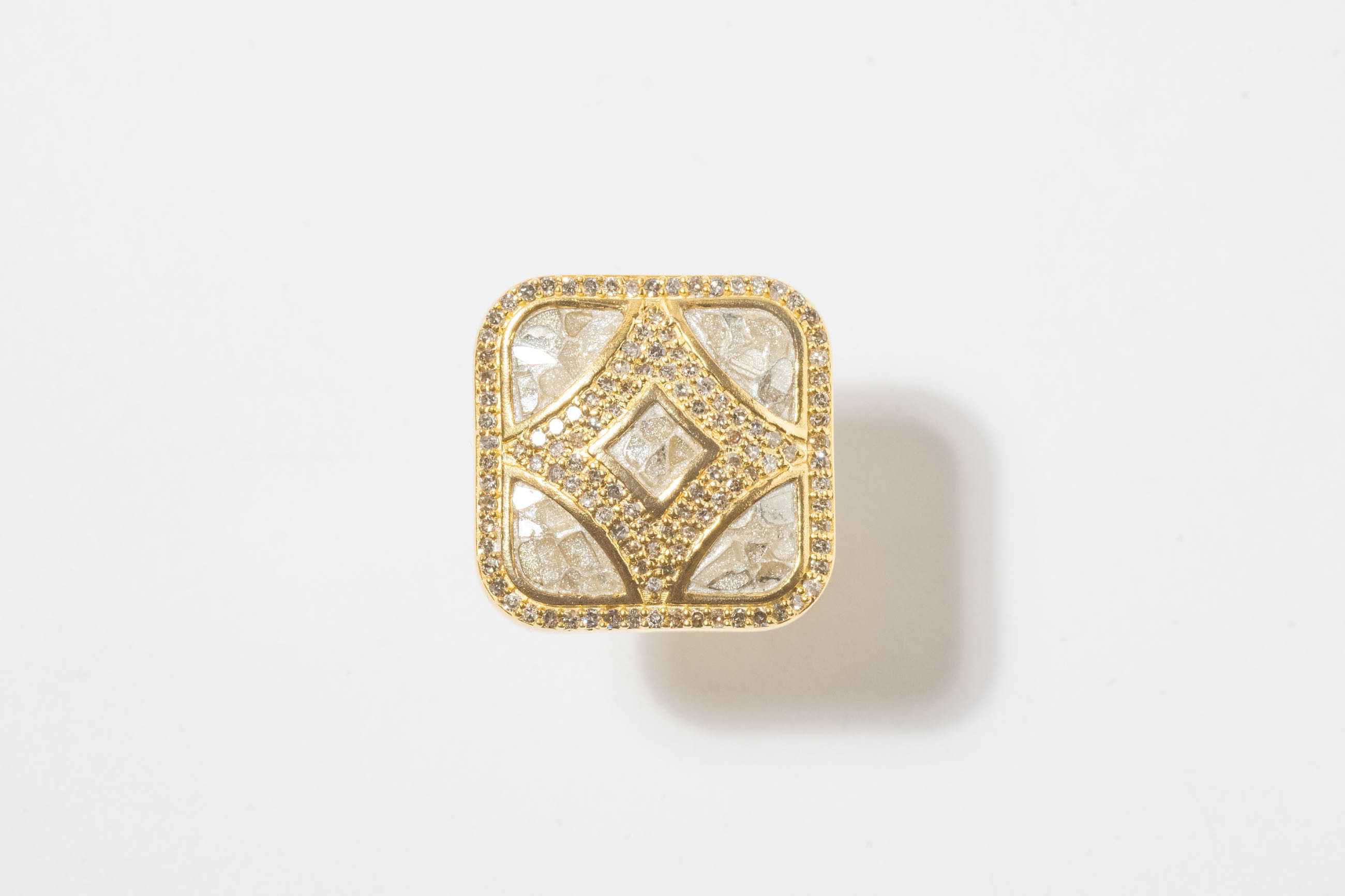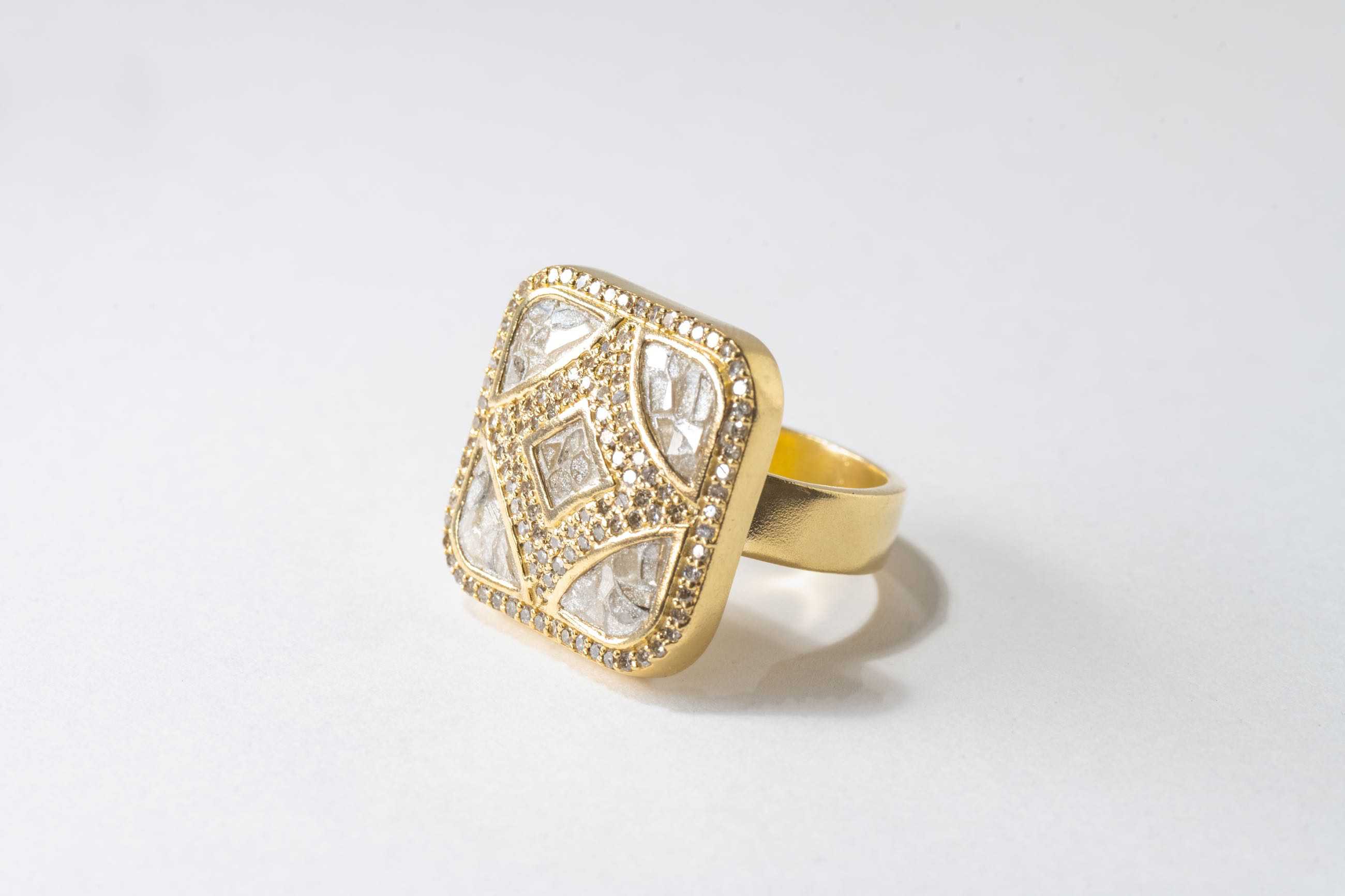Sliced raw uncut diamonds, White resin, Pave champagne diamonds, Vermeil 18K gold