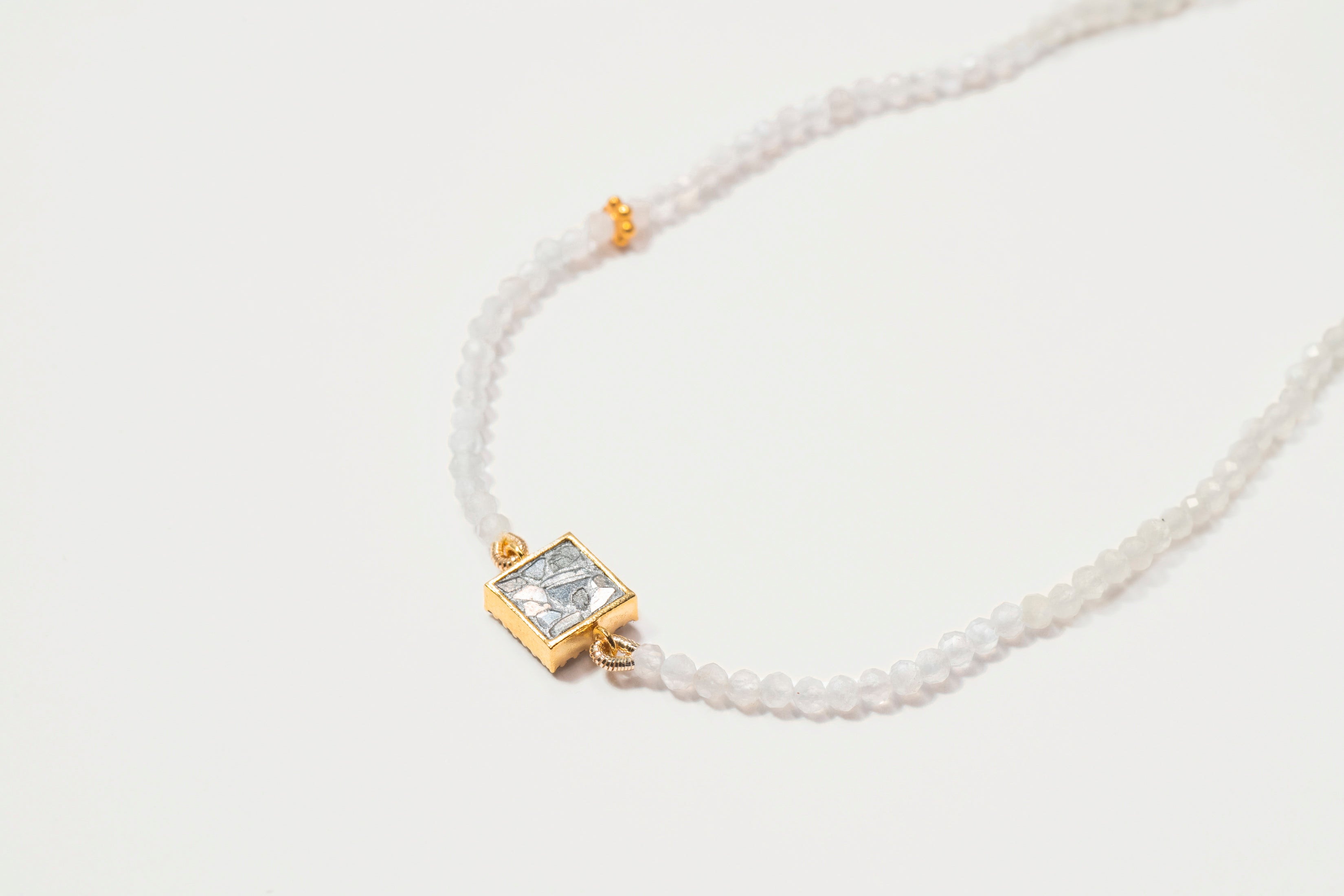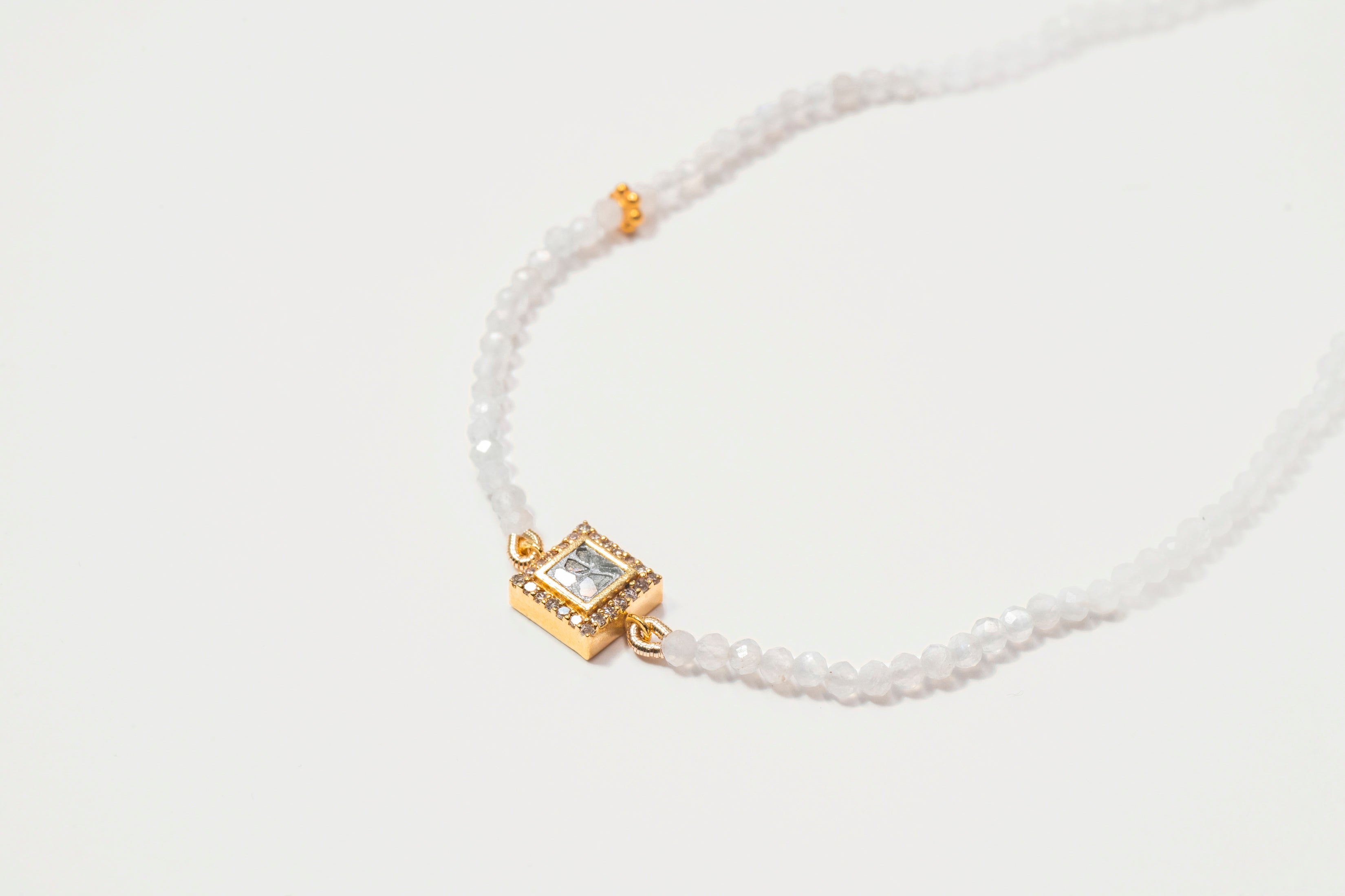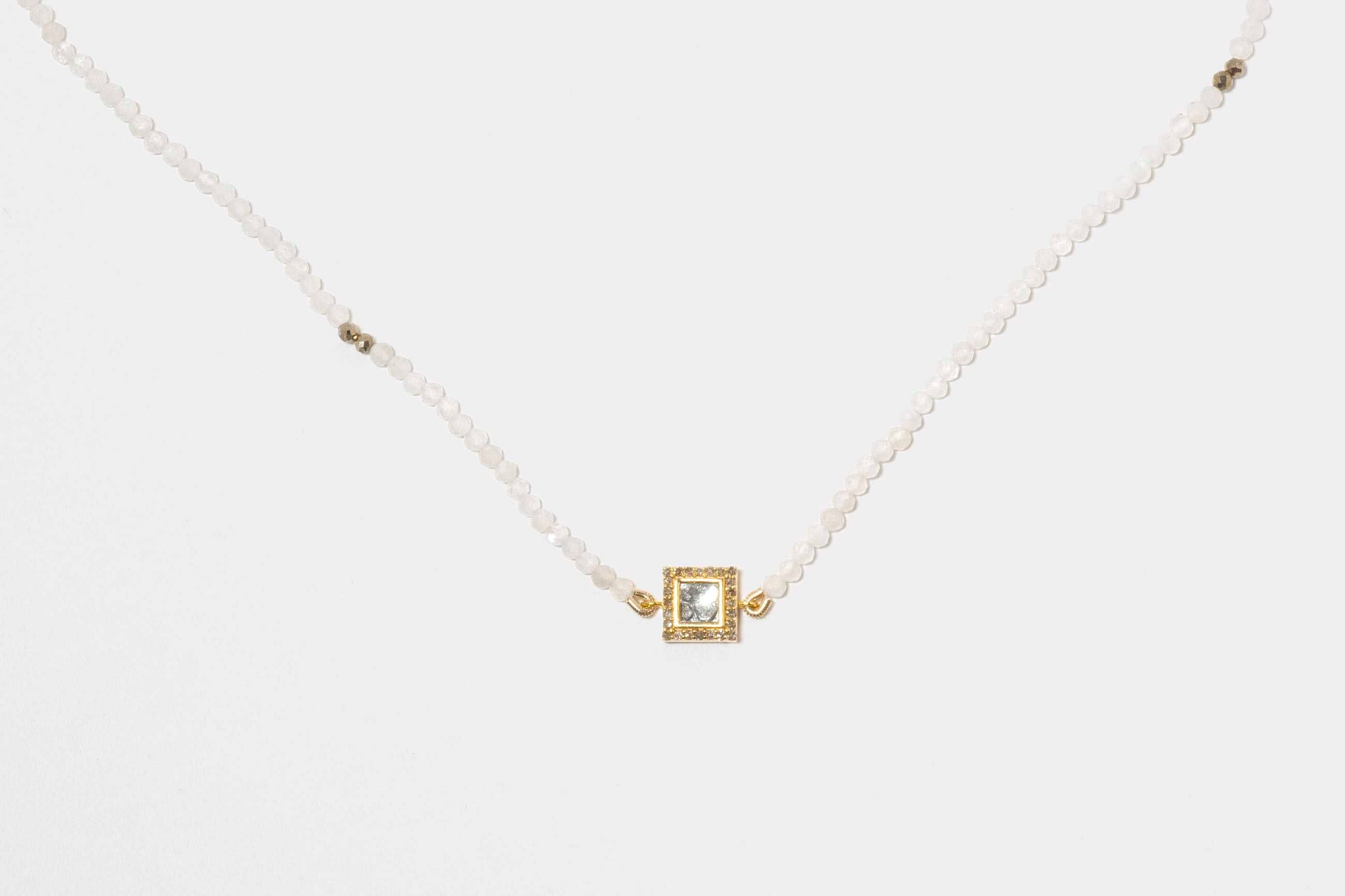 Sliced raw uncut diamonds, Moonstone beads, Pyrite beads, Silver resin, Pave champagne diamonds, Vermeil 18K gold