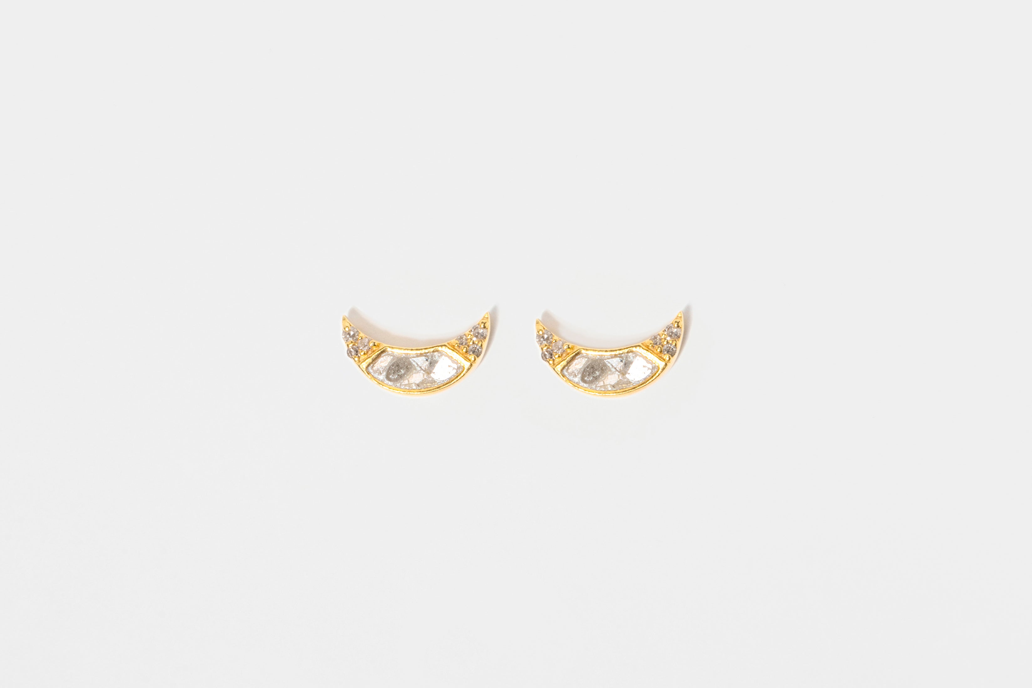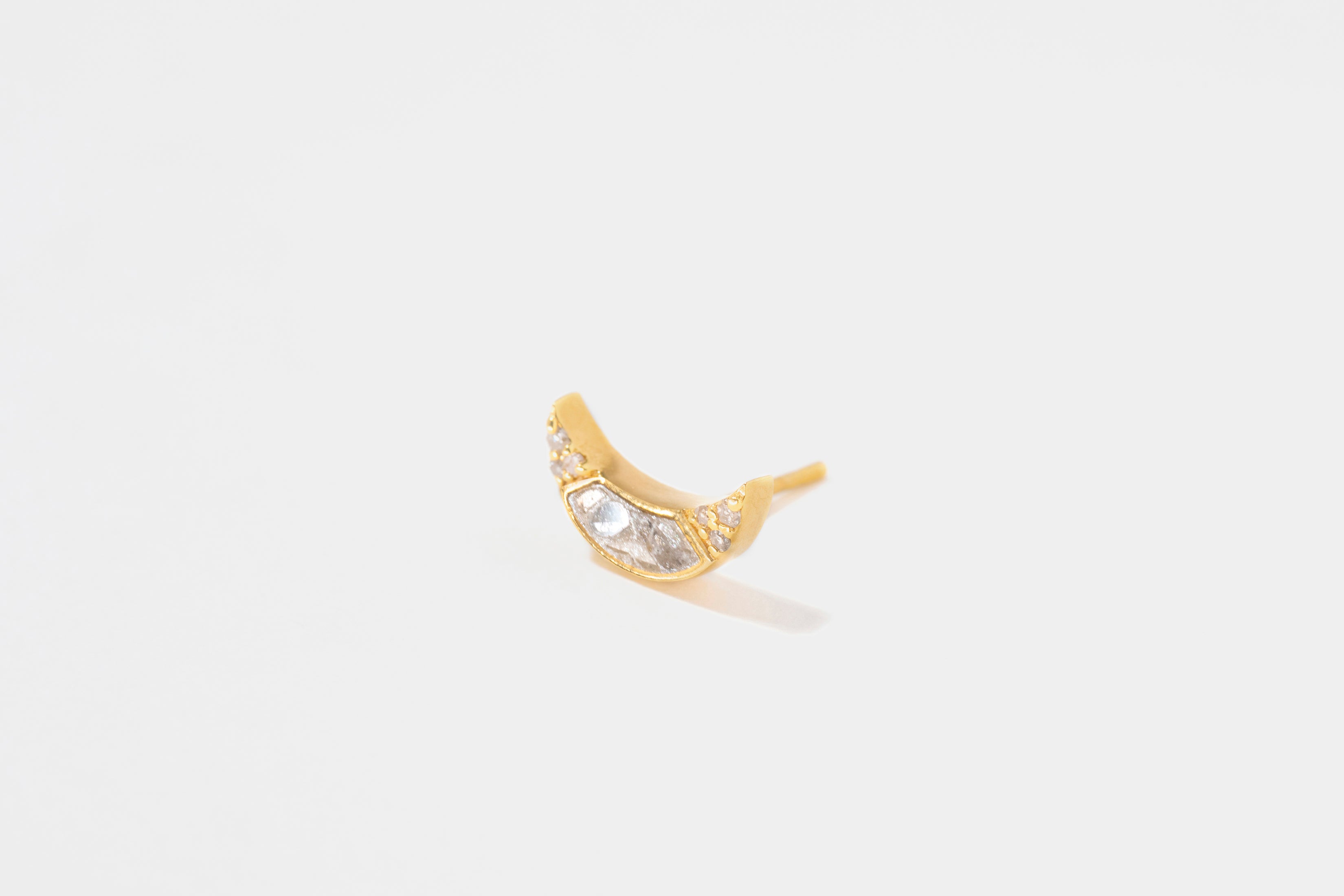 Sliced raw diamonds, White resin, Pave champagne diamonds, Vermeil 18K gold.